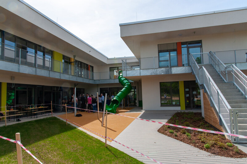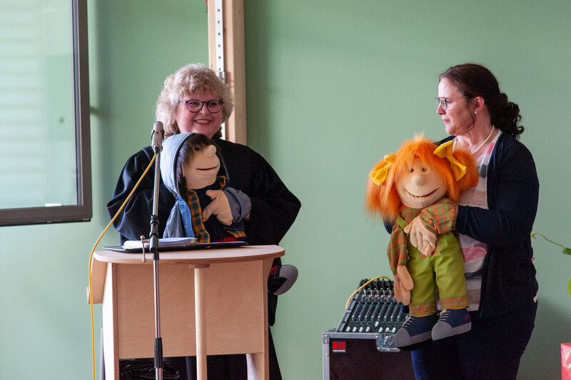 Öhringen. „Einfach spitze, dass du da bist“ erklang es am 30. April aus vielen Kehlen ganz junger und auch etwas älterer Menschen als gemeinsames Lied zur Eröffnungsfeier der neuen Kita „Friedenshort“ der Evangelischen Jugendhilfe Friedenshort – Region Süd in Öhringen. Tatsächlich da sein zu können – eine Selbstverständlichkeit war das nicht. „Viele fleißige Hände haben das möglich gemacht, dass wir heute exakt 914 Tage nach dem ersten Spatenstich hier feiern können“, betonte Leitende Theologin Ute Riegas-Chaikowski in ihrer Begrüßung von Kindern, Eltern, Mitarbeitenden, der Delegation der Friedenshort-Schwesternschaft und Mitarbeitenden der Gesamtverwaltung aus Freudenberg sowie von Oberbürgermeister Thilo Michler und Gästen aus Rat und Verwaltung. „Möge die Kita für alle Kinder ein Ort werden, um das Leben und die Welt zu entdecken, um Freundschaften zu schließen und auch ein Ort, in dessen Mitte Gott ein Platz gewährt wird“, so der Wunsch von Pfrn. Riegas-Chaikowski. Ihr Dank galt den vielen Beteiligten am Bauprojekt, der finanzierenden Bank für Kirche und Diakonie aber auch allen, die das Vorhaben im Gebet mit begleitet hätten, wie vor allem die Friedenshort-Diakonissen. „Herrn Oberbürgermeister Michler danke ich für die vertrauensvolle Zusammenarbeit von Anfang an“, hob Pfrn. Riegas-Chaikowski hervor. In ihrer Andacht, unterstützt von den Handpuppen Marco und Lucy, hatte Pfrn. Riegas-Chaikowski vor allem die Kinder im Blick. Darin ging es um so wichtige Eigenschaften wie füreinander da zu sein, zu teilen und fröhlich zu sein: „Gott hält zu uns, er hat jeden Einzelnen von uns lieb, so wie wir sind – und das Schöne ist: Seine Liebe ist unendlich groß!“