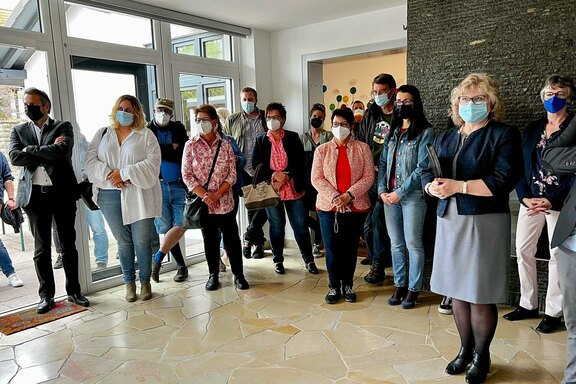 Extra für diesen Anlass angereist waren, neben den geladenen Gästen (Eltern, Kinder, Ehemalige, Förderer, Kolleginnen und Kollegen der Einrichtung Northeim sowie anderer Träger, Netzwerkpartner, Handwerker ...), auch die Geschäftsführung aus Freudenberg mit Pfrn. Riegas-Chaikowski und Herrn Hadem sowie weitere Abteilungsleitungen und Regionalleiter Timon Brandenberg mit Leitungskolleginnen und Kollegen der Region Nord. Wir waren wirklich begeistert, dass alle gemeinsam mit uns diesen schönen Tag gefeiert haben. Nach einem kleinen Empfang mit Führungen durch das Haus moderierte Frau Louis durch den Festakt. Zunächst wurde seitens der Mitarbeitenden Frau Bruns und Herrn Harenkamp (Gruppenleiter) ein amüsanter Rückblick der SGA-Flex vorgetragen, gefolgt von einer Andacht und Segensworten durch Pfarrerin Riegas-Chaikowski. Anschließend bot Herr Ilse (ehemaliger Besitzer der Villa) einen kleinen geschichtlichen und persönlichen Einblick in die Geschichte des Hauses. Regionalleiter Timon Brandenberg dankte mit sehr herzlichen Worten allen an der Neugestaltung der Villa beteiligten Personen. Zum Abschluss des Festaktes wurde schließlich Frau Feddersen (WG Bad Gandersheim) und Herr Harenkamp (GL SGA-Flex) der silberne Friedenshortstern für ihre 25-jährige Dienstzugehörigkeit (und natürlich für ihre gute und motivierte Arbeit) verliehen.