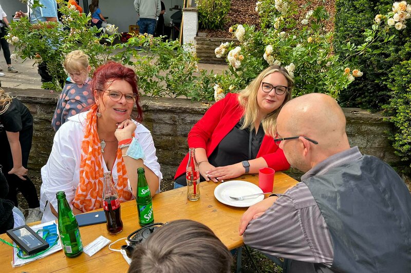 Nach dieser gelungenen Eröffnungsfeier mit dem anschließenden Sommerfest haben die Kolleginnen und Kollegen gemeinsam mit Herrn Bornemann und Frau Louis noch zusammen gesessen und waren ganz "berauscht" von diesem gelungenen Fest, den tollen herzlichen Gästen, der Hilfsbereitsschaft seitens der Eltern und Familienangehörigen, der aktiven fleißigen Unterstützung der Hauswirtschaftskräfte sowie unseres Hausmeisters und natürlich der eigenen Mitarbeitenden der SGA-Flex.