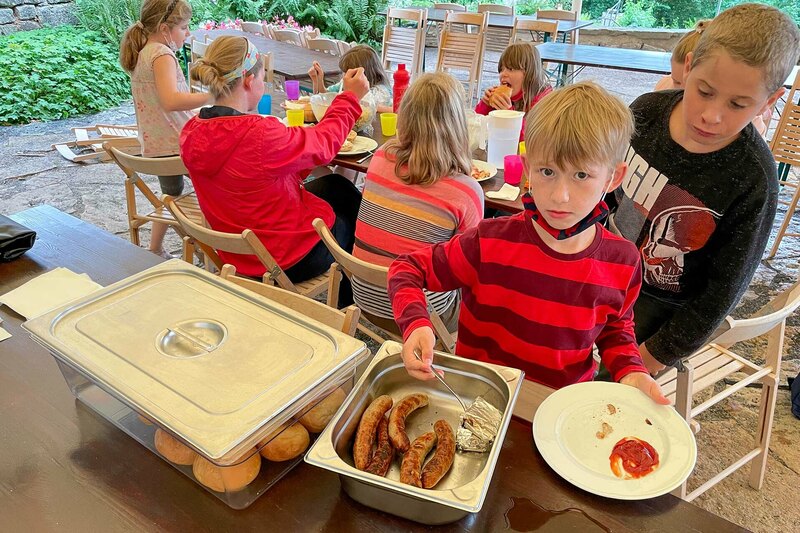 Die mehr als 900 Jahre alte Burg dient heute als Erholungs- und Begegnungsstätte und lädt seine Gäste auf eine Reise in die Vergangenheit ein. Den Anreisetag verbrachte die Gruppe daher auf dem Gelände der ansehnlichen Burg, um diese zu erkunden. Während einer Rallye gerieten die Kinder ordentlich ins Staunen über die riesigen Ausmaße der Burg. Der Spielplatz lud anschließend zum ausgiebigen Toben ein. Am nächsten Tag war für alle Gelegenheit, der eigenen Kreativität freien Lauf zu lassen: Aus Holz bastelten die Kinder Schilde und Schwerter, die anschließend nach Lust und Laune mit Farbe verziert wurden. Nachmittags ging es zum Abkühlen in das nahegelegene Schwimmbad.
