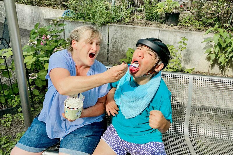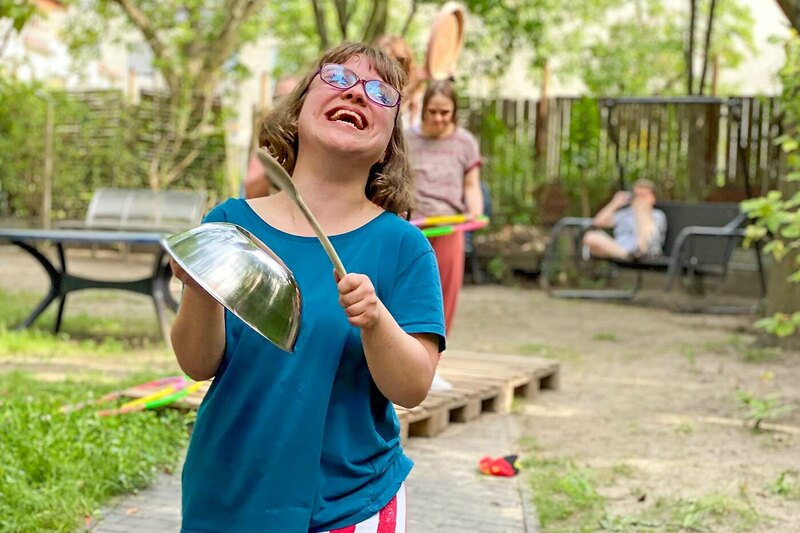 Berlin-Weißensee. Das 20-jährige Bestehen des „Wohnprojekts Weißensee“ der Tiele-Winckler-Haus GmbH konnte aufgrund der Corona-Pandemie nur in „kleinen Häppchen“ feierlich begangen werden. Daher kamen letztendlich an drei Terminen Bewohnende, Mitarbeitende und Angehörige im Garten des Haues zusammen, um das Jubiläum zu feiern. Begonnen haben wir mit dem ersten kleinen Fest nur für die beiden Wohngruppen am 13. August, dies ohne Angehörige oder externe Gäste. Bei herrlichem Wetter ließen sich alle große Eisbecher schmecken, es gab Musik und durfte getanzt werden. Voller Freude stürmte ein Bewohner mit der E-Gitrarre die spontan errichtete Bühne im Garten. Mitarbeitende und Bewohnerinnen und Bewohner wippten, tanzten und applaudierten zusammen. Es war ein gelungener Nachmittag.