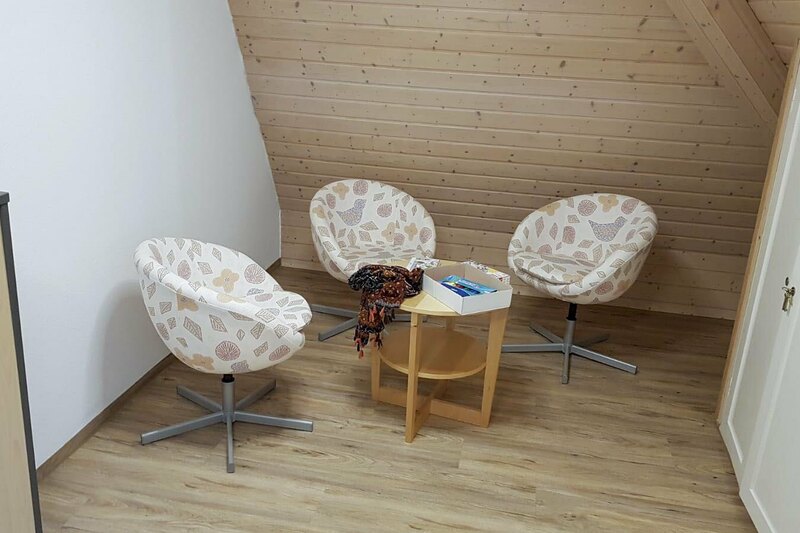 Auf zwei großzügigen Ebenen bewohnt die »Flex« oder »Flexi«, wie die Gruppen je nach Alter liebevoll genannt werden, die Villa. Es war schwer vorstellbar, dass aus den Räumen mit zerborstenen Heizungsrohren, Frost- und Wasserschaden einmal so freundliche und einladende Gruppenräume werden könnten. In den Lernzimmern gibt es die nötige Ruhe für Hausaufgaben und Lernen. Aber das neue Zuhause bietet viel mehr: Ob Abhängen im Chillzimmer, Spielen, Basteln und Kickern in den Gruppenräumen, Kreativ sein und Werken in der Werkstatt und der Garage – je nach Lust und Stimmung gibt es genügend Platz und Möglichkeiten, sich auszutoben, zu erproben und zu entwickeln. Auch für gemeinsame Gespräche, runde Tische, informative Austauschrunden und Elternabende, gesellige Familiennachmittage oder Gartenfeste finden sich im Haus und Garten passende Plätze. Im Dachgeschoss wurde außerdem noch Wohnraum geschaffen und die ambulanten Einzelfallhilfen finden hier Räume für ihre Angebote.