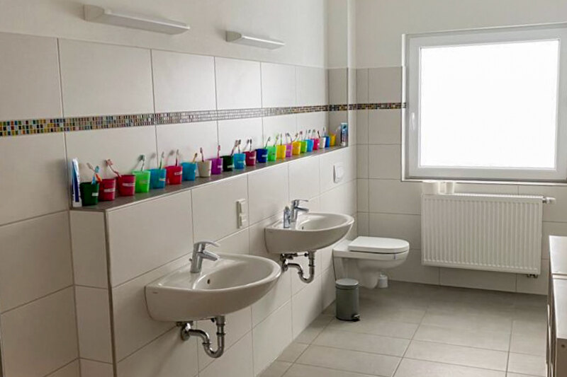 Leider hat uns die Corona-Pandemie auch beim Umbau nicht verschont. Immer wieder mussten Termine mit Handwerkern verschoben werden, da Lieferungen nur verzögert ankamen. Somit hat sich der Umzug immer weiter nach hinten verschoben. Bei der Farbgestaltung und beim Mobiliar konnten wir uns auf die geschulten Augen und Hände von Carmen Louis und Thomas Bornemann verlassen. Gemeinsam mit den Kolleginnen und Kollegen wurde ein Farb- und Möbelkonzept entwickelt, was perfekt in das Ambiente passt. Klare Linien, aber auch bunte Effekte machen das Haus ansprechend für uns Erwachsene, aber vor allem für die Kinder.