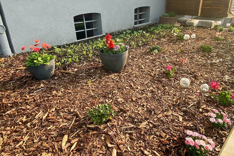 Im Garten haben wir Unkraut entfernt und den Boden gefegt. In den hinteren Blumentöpfen ist uns aufgefallen, dass wir Erdhummeln haben. Damit unsere kleinen Freunde nicht so einen weiten Weg haben, pflanzten wir dort auch vorsichtig Blumen ein.«