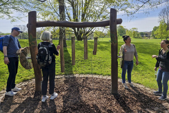 Die Gartenschau in Mannheim besteht aus zwei Parkanlagen, dem altehrwürdigen Luisenpark und dem neu entwickelten Spinelli-Park, welcher auf einem ehemaligen Militärgelände der US-Armee angelegt wurde. Verbunden sind beide Parks durch eine Seilbahn, was ein besonderes Highlight darstellt. Nach einer ersten Erkundungstour in kleinen Gruppen waren um 13 Uhr vier Führungen durch die Parkanlagen gebucht. Dort erfuhren die Mitarbeitenden viel über die Geschichte der Parks, die Ideen der Austellungsverantwortlichen und natürlich die Flora und Fauna.