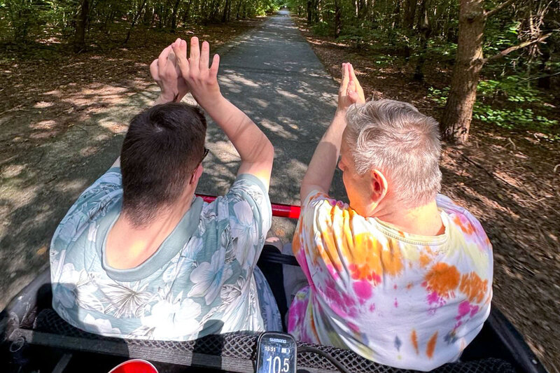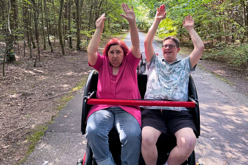 Berlin-Lichtenrade. Eine Neuanschaffung, die bestens zum Spätsommerwetter passt: Seit einiger Zeit können sich die Bewohnerinnen und Bewohner des Tiele-Winckler-Hauses in Berlin-Lichtenrade über eine elektronisch angetriebene Rikscha freuen. Natürlich musste das Gefährt rasch ausprobiert werden. Zusätzlich wurden langanhaltende Bauarbeiten im Umland abgeschlossen, so dass ein weiterer Abschnitt des ehemaligen Mauerstreifens wieder befahrbar ist. Die Kombination aus beidem führt zu einer netten Abwechslung für alle Beteiligten: Etwas "Fahrtwind" um die Nase wehen lassen und schöne Eindrücke sammeln rund um die Häuser der Tiele-Winckler-Haus GmbH in der Mozartstraße. So steht spontanen Kurzausflügen nichts mehr im Weg.