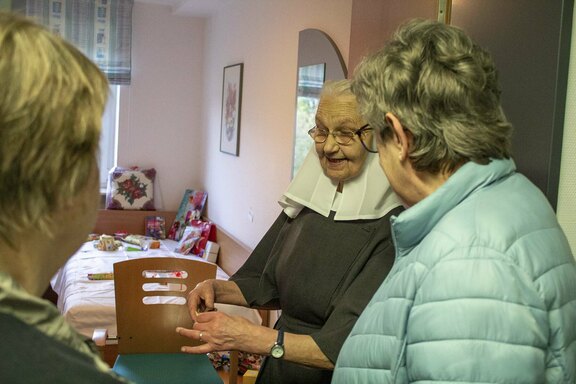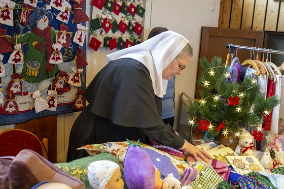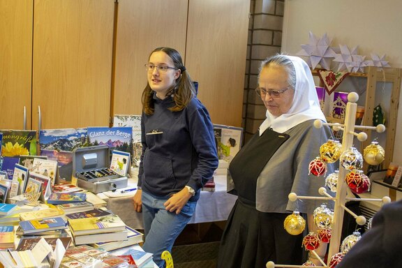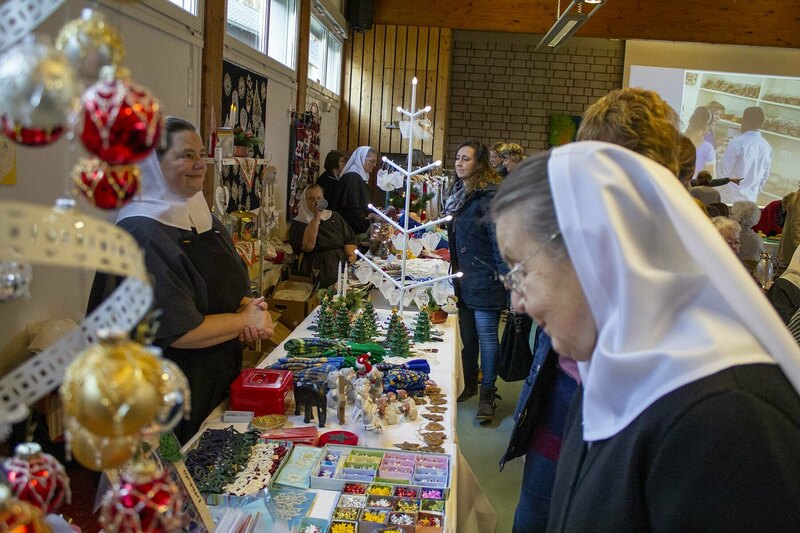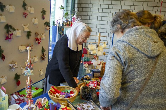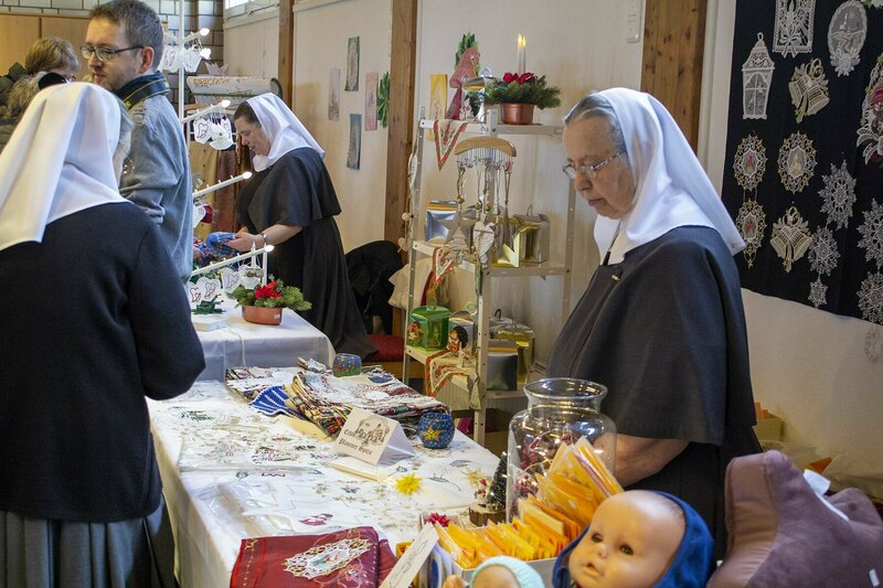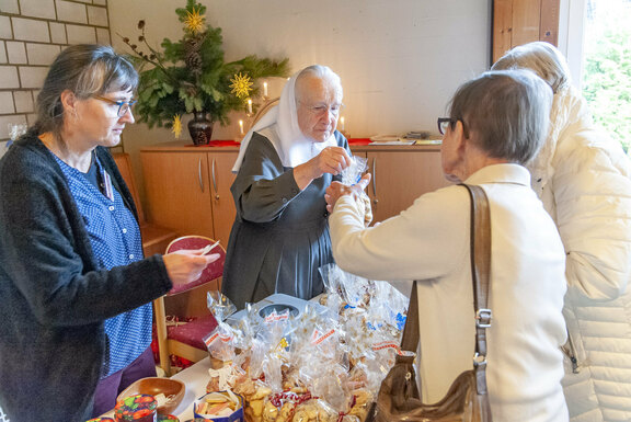 Freudenberg. „Wir haben wieder viele schöne Dinge im Angebot, allen einen frohen und gesegneten Nachmittag“, begrüßte Oberin Sr. Christine Killies die Gäste zum voradventlichen Basar im Friedenshort am vergangenen Samstag. Pünktlich zum Eröffnungs-Gongschlag hatte sich bereits eine lange Schlange am Kuchenbuffet gebildet. Denn längst ist der Basar kein Geheimtipp mehr, sondern mit seinem bekannt reichhaltigen Angebot ansprechender handgefertigter Artikel zum Anziehungspunkt geworden.