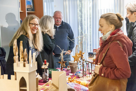 Die Friedenshort-Diakonissen und ihre Freundeskreise sowie Mitarbeitende des Friedenshortes hatten ein ganzes Jahr lang viel Mühe und Zeit investiert, um die Vorfreude auf Weihnachten zu erhöhen: Weihnachtsschmuck zum Hinstellen oder für das Fenster, kunstvolle Kerzengestecke und Adventskränze waren im Angebot. Erstmals gab es auch viele ansprechende Holzartikel und die Plauener Spitze und buntes Selbstgestricktes durften ebenfalls nicht fehlen. Weiterer Anziehungspunkt war ein Raum voller großer und kleiner Stofftiere, die vor allem die jüngeren Gäste begeisterten. Weihnachtskarten und ein reichhaltiger Büchertisch rundeten das Angebot ab. Wer wollte, konnte sich zudem mit leckeren Plätzchen versorgen, außerdem gab es selbstgemachte Marmelade. Regen Zuspruch hatte auch die große Tombola mit einer Vielzahl schöner Gewinne. Unter dem Motto „Jedes Los gewinnt“ waren keine Nieten im Angebot.