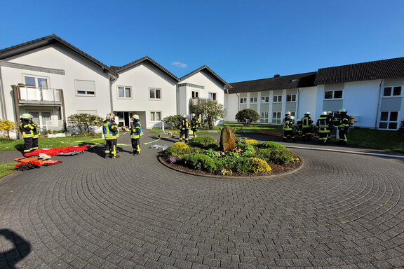 Einsatzleiter Thomas Münker und seine über 40 Einsatzkräfte erhalten am Einsatzort durch Christoph Söhngen, Leiter des Technischen Dienstes des Friedenshorts die Information, dass in einer Wohnung im ersten Obergeschoss Rauch festgestellt wurde. Im ersten Wohnblock des aus drei Gebäudeteilen bestehenden „Haus Friedenshort“ werden fünf der 40 Bewohnerinnen und Bewohner vermisst. Mit Atemschutzgeräten und Schlauchleitungen ausgerüstete Feuerwehrfrauen und -männer beginnen so rasch wie möglich das Gebäude nach den vermissten Personen zu durchsuchen und nach draußen zu begleiten oder zu tragen.