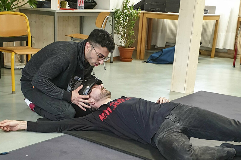 Nachdem sich alle Beteiligten vorgestellt hatten, wurde im ersten Block der Veranstaltung zunächst theoretisches Wissen vermittelt. Die Teilnehmenden lernten, was bei einer hilflosen oder verletzten Person zu tun ist. Auch die stabile Seitenlage wurde intensiv besprochen und praktisch geübt.
