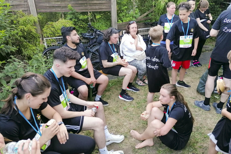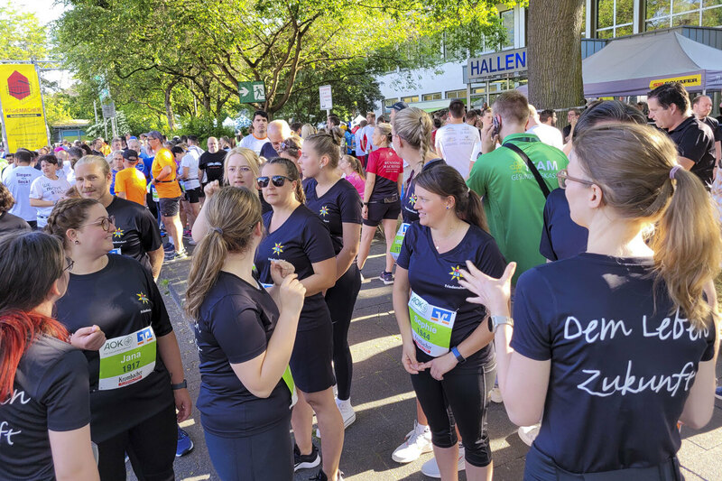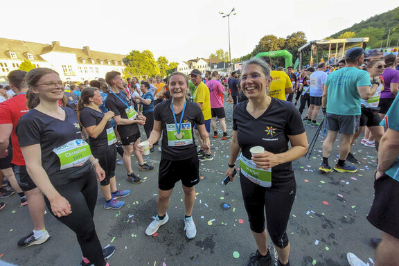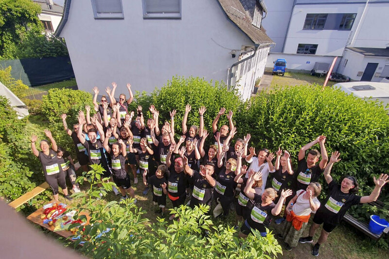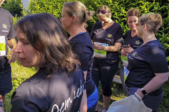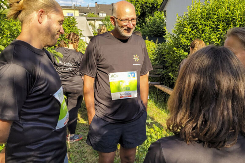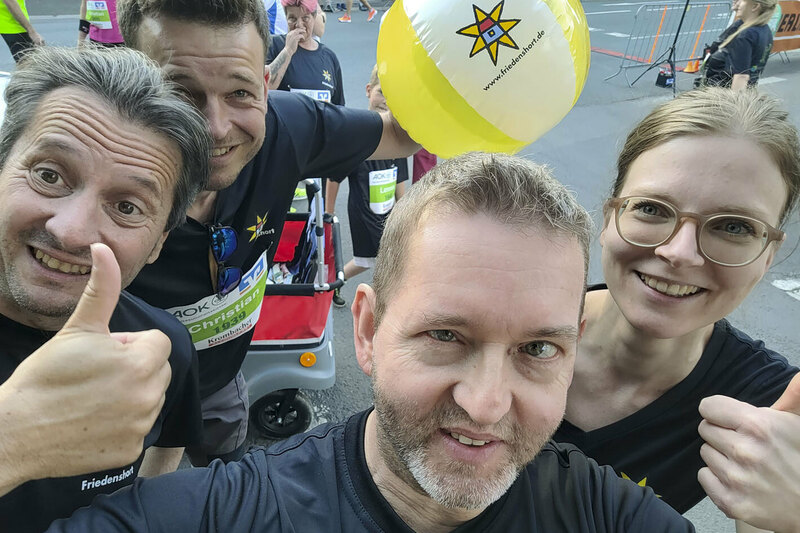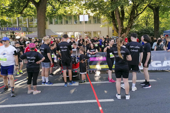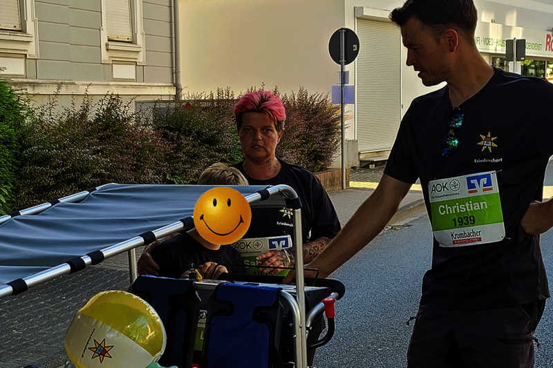 Freudenberg/Siegen. Hervorragendes Wetter und gute Laune waren die perfekten Zutaten für die Teilnahme des Friedenshortes am Siegerländer Firmenlauf 2023 am 14. Juni. Knapp 40 Mitarbeitende aus den Einrichtungen Freudenberg/Siegen/Altenkirchen, aus der Gesamtverwaltung sowie einige Kinder und Jugendliche aus Betreuungskontexten machten sich auf die 5,5km lange Strecke. Zur besonderen Gaudi hatte sich Christian Krings das E-Mobil aus der Kita Friedensnest als "Lauf-Utensil" mit auf die "Piste" genommen.
