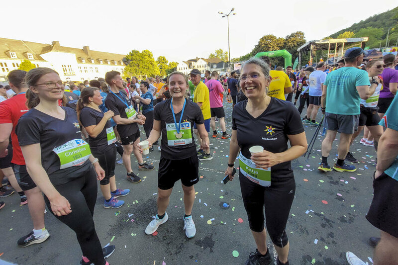 Allen gelang es die Strecke zu absolvieren, immer im jeweils dem Tempo, was als angenehm empfunden wurde. Die eine oder den anderen hatte dennoch etwas der Ehrgeiz gepackt, angefeuert von den vielen Menschen am Straßenrand und den musikalischen Stationen, die mit unterschiedlichsten Rhythmen anfeuerten. Hier die Top3 der Friedenshort-Teams bei den Frauen und Männern: