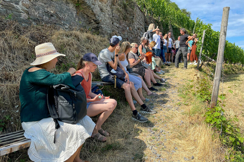 Nach der Stadtführung ging es zu einem Weingut an der Mosel. Dort wartete nicht nur eine Führung durch die Weinberge, der Rebensaft konnte auch bei einer Weinprobe genossen werden. Die Ausflügler hatten die Möglichkeit, verschiedene Weine zu probieren und dabei mehr über den Weinanbau in der Region zu erfahren. Am Abend kehrte die Gruppe in ein Restaurant am Rhein ein. Bei einem köstlichen Abendessen in gemütlicher und uriger Atmosphäre nutzten alle die Gelegenheit, sich angeregt über eine breite Palette von Themen auszutauschen sowie den gemeinsamen Ausflug zu resümieren.