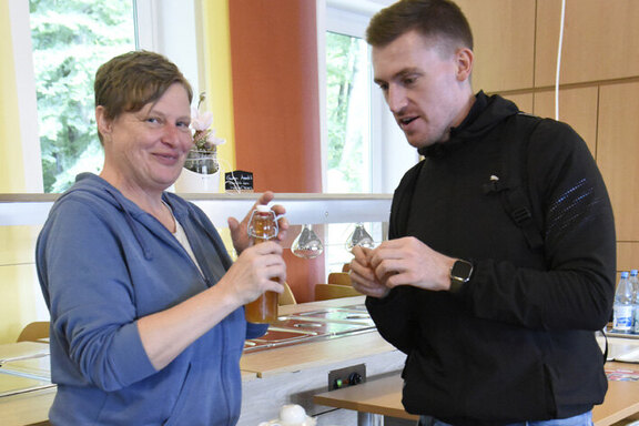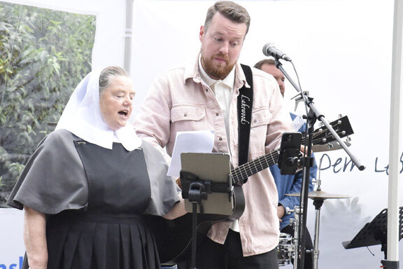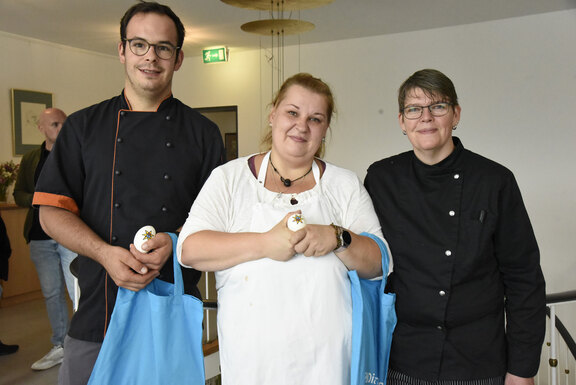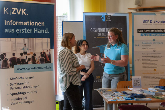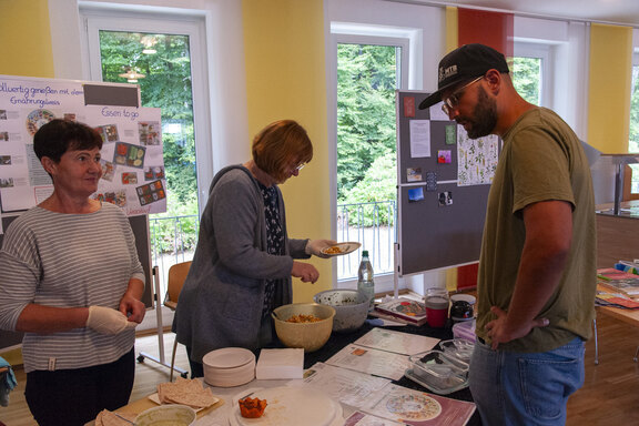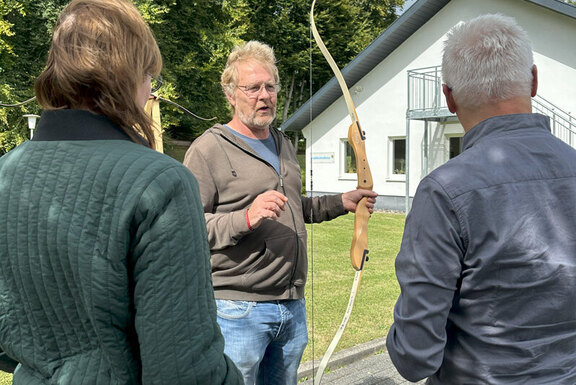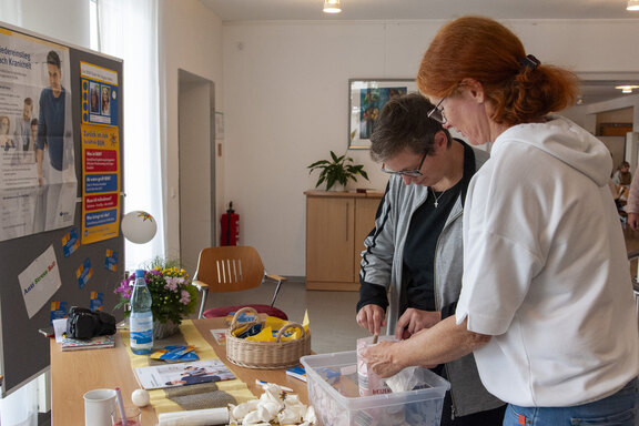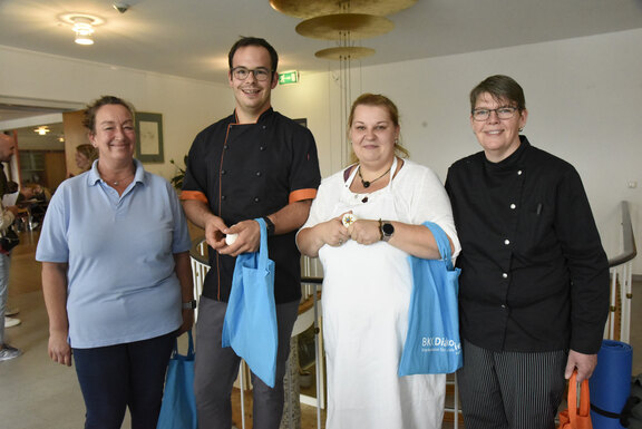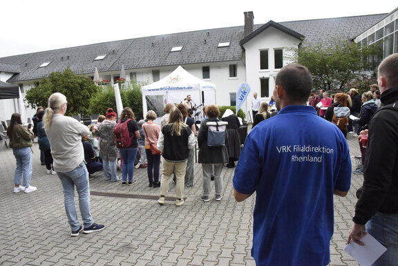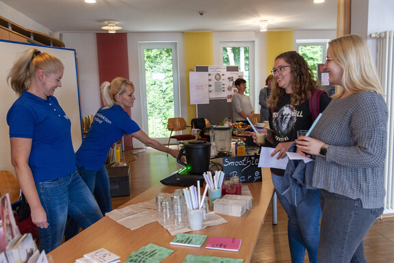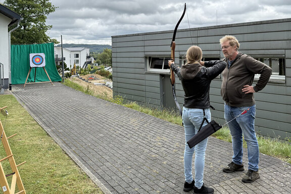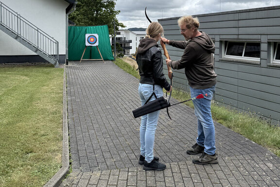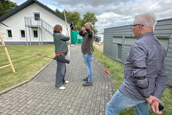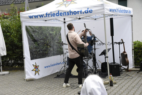 Freudenberg. Informieren, selbst aktiv werden und Leckeres sowie Gesundes genießen - das alles war vor einer Woche beim ersten Gesundheitstag für Friedenshort-Mitarbeitende aus allen Arbeitsfeldern des Bereichs Freudenberg/Siegen möglich! Das Friedenshort-Gelände in Freudenberg verwandelte sich in einen Markt der Möglichkeiten. Ob Präventionskurse oder Gesundheitsdaten, Stressbewältigung, Ernährung oder Bikeleasing - für die unterschiedlichsten Themen hielten die beteiligten Ausstellerinnen und Aussteller Informationen und Kursangebote bereit. Aus den eigenen Reihen der Mitarbeiterschaft gab es Bogenschießen, das Betriebliche Eingliederungsmanagement stellte sich vor, ein Stand informierte über gewaltpräventives Arbeiten und einige unserer Hauswirtschaftskräfte hatten einen gesunden Imbiss vorbereitet. Und der Spaß kam auch nicht zu kurz, zum Beispiel beim gemeinsamen Singen mit einer kleinen Besetzung der sehr beliebten Coverband Unart (super, dass mit Finn und Phil zwei Musiker zugleich Kollegen sind). Von den flotten Rhythmen und Liedern ließen sich von klein bis groß, von Kita-Kindern bis zur Friedenshort-Schwesternschaft, viele Gäste animieren zum Mitsingen, Mitklatschen oder einfach zum Bewegen.
