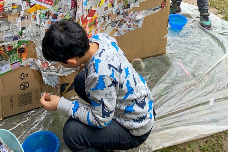 Öhringen. „Kannst du den Karton mal klein reißen?“ So fing alles an, denn aus der Altpapier-Verpackung der neuen Couch wurde ein großes Projekt, als ein Kind sagte: „Daraus können wir doch etwas bauen!“ Und so haben alle in der Tagesgruppe 1 (TG) angefangen zu überlegen und auszuprobieren. Die Idee, daraus ein Haus zu fertigen, kam gut an und das Bauen ging los. So haben die Kinder sowie die Erwachsenen zusammen die Pappe gerissen, geschnitten und geklebt, bis ein Grundgerüst stand.