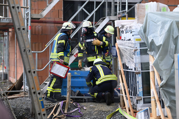 Freudenberg. Die Baustelle des Friedenshortes für die zukünftige Einrichtung "Wohnen und Pflege am Wald" am Ende der Euelsbruchstraße war letzten Samstag am 21. Oktober Ort der Herbstabschlussübung der Freiwilligen Feuerwehr Freudenberg.