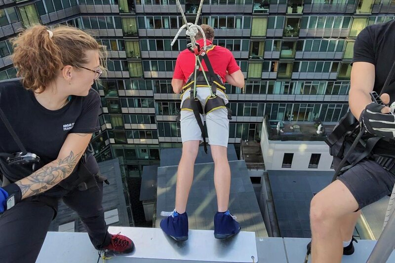 Berlin. Nervenkitzel im Spätsommer für einige der Klientinnen und Klienten im Betreuten Einzelwohnen. Zusammen mit den BEW-Mitarbeitenden nahmen sie Ende Juli ihren ganzen Mut zusammen und schaukelten in 120 Metern Höhe über Berlin! Der Veranstalter war sehr einfühlsam und motivierend im Umgang mit der Gruppe, so dass dieses Event zu einem wirklich besonderen Erlebnis geriet. Alle Beteiligten waren stolz, voller Euphorie und kamen mit einer großen Ladung gestärktem Selbstbewusstsein wieder auf dem Boden am Alexanderplatz an. In Anschluss hat ein Klient sogar noch spontan die Einladung vom Veranstalter zum house-running angenommen. Dabei geht es angeseilt über die Dachkante und dann mit Blick in die Tiefe senkrecht nach unten entlang der Fassade.