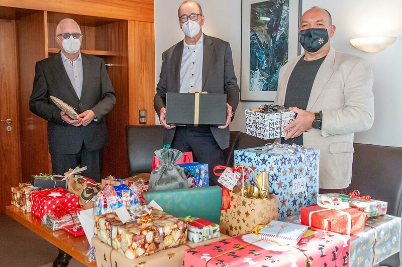 „Wir hoffen sehr, dass wir gerade in der gegenwärtigen Zeit den Kindern und Jugendlichen eine Freude machen konnten“, betonte Prof. Dr. Joachim Labenz, Präsident des Rotary Clubs Siegen, bei der Geschenke-Übergabe am 18. Dezember. Für die Evangelische Jugendhilfe Friedenshort GmbH dankte Regionalleiter Thorsten Entrop, der zugleich auch ein Lob an die betreuten Kinder und Jugendlichen aussprach: „Ich finde es bewundernswert, wie diszipliniert sich alle in der Pandemie verhalten!“ Zudem gab er die Zusicherung, dass alle Geschenke noch rechtzeitig vor Heiligabend die Friedenshort-Wohngruppen erreichen.