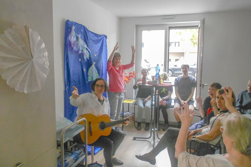 Danach begleitet sie zwei fröhliche Lieder mit der Gitarre und lädt alle Gäste zum Mitsingen und Mitbewegen ein. Was für eine schöne Stimmung! Susanne Bürkle, die Koordinatorin des Betreuen Einzelwohnens, berichtet von der Entstehung des neuen Standortes. Bereits im Jahr 2014 wurde gemeinsam mit der ehemaligen Regionalleitung Helena Scherer die Idee geboren, das BEW auf diese Art und Weise zu erweitern. Das Ziel: Menschen eine Möglichkeit zu geben, alleine zu wohnen und gleichzeitig an einer näheren Begleitung angebunden zu sein. Aufgrund dieses Konzepts sind in Lankwitz sechs separate Wohnungen und eine Stützpunktwohnung, bestehend aus Büro, Bad, Küche und Gemeinschaftsraum, entstanden.