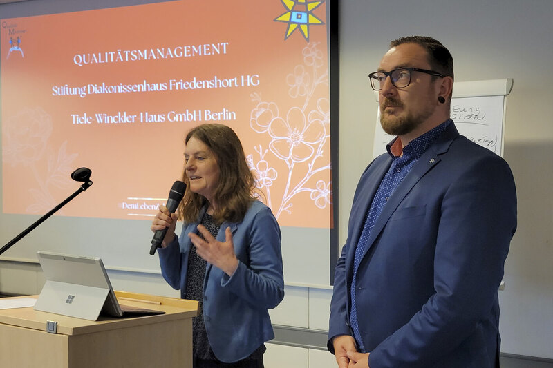 Abgerundet wurde die Tagung durch eigene Themen und Prozesse: unter anderem wichtige Bauprojekte, IT-Themen, ein neues internes Info-Portal sowie dem Qualitätsmanagement in der Eingliederungshilfe. Und natürlich ist die Jahrestagung immer ein Ort zum Austausch in der großen »Friedenshort-Familie«. Aus dem Leitungskreis verabschiedet wurden Axel Kuss (Heiligengrabe, Stellenwechsel) sowie Jörg Wartenberg (Tiele-Winckler-Schule, Ruhestand). „Alle eure Sorge werft auf ihn; denn er sorgt für euch.“ Diesen Vers aus dem ersten Petrusbrief, Kap. 5 hatten Pfrn. Ute Riegas-Chaikowski und Oberin Sr. Christine Killies jeweils für den geistlichen Impuls an den beiden Tagen gewählt. Mut zu schöpfen in herausfordernden Zeiten, Halt zu finden bei multiplen Herausforderungen – hier sei es entlastend, Gott an der eigenen Seite zu wissen.