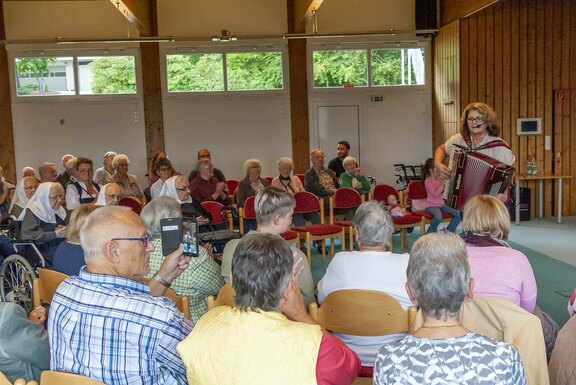 Freudenberg. Mitschunkeln, Mitsummen oder Mitsingen – alles war nicht nur erlaubt, sondern ausdrücklich erwünscht beim volkstümlichen Konzert am Freitag, 13. September, im Festsaal des Friedenshortes. In der Reihe „Herbstliche Konzerte“ hatte der Pflegewohnbereich der Stiftung Diakonissenhaus Friedenshort nun im 3. Jahr in Folge Menschen mit und ohne kognitive Einschränkungen zu einem musikalischen Nachmittag eingeladen. Rund 70 Gäste konnte Susanne Spill (Pflegedienstleitung) hierzu begrüßen und wünschte allen einen vergnüglichen und unterhaltsamen Nachmittag.