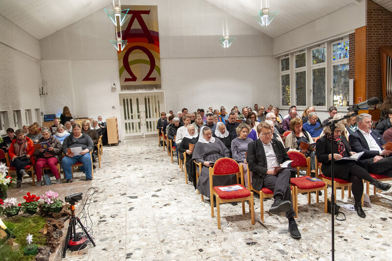 Das anschließende gemütliche Beisammensein, dass seit einiger Zeit normalerweise im Schein von Feuertonnen "open-air" stattfindet, musste diesmal aufgrund von Sturm und Regen nach drinnen verlegt werden. Alle Gäste fanden jedoch in den Gängen und Räumen im Mutterhaus-Erdgeschoss Platz und konnten eine leckere Currywurst sowie Punsch in unterschiedlichen Ausführungen genießen.