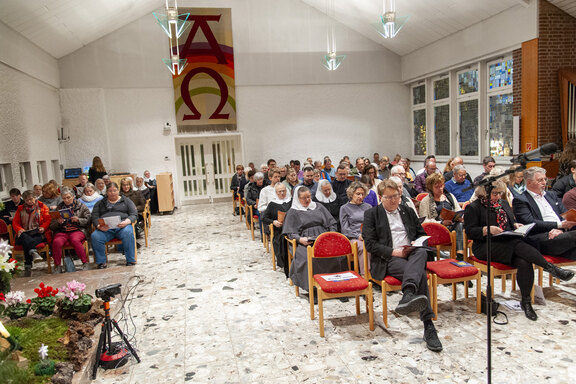 Freudenberg. Rund 150 Mitarbeitende aus unterschiedlichen Arbeitsfeldern des Friedenshortes im Raum Freudenberg/Siegen sowie Schwesternschaft und die Friedenshort-Hausgemeinschaft fanden sich am 19. Dezember zur diesjährigen Weihnachtsfeier ein. "Wir sind für Gott ein Wohlgeruch Christi" - ausgehend von diesem Vers im 2. Korintherbrief und im besten Wortsinn duftende Gedanken hatte Pfr. Christian Wagener ins Zentrum seiner Andacht gestellt. Dabei schlug er den Bogen vom Duftwecker bis hin zur Einladung, sich selbst auf eine phantasievolle Duftreise zu begeben und die je eigenen Vorstellungen der Düfte der Advents- und Weihnachtszeit zu ergründen. In der Lesung, die von Christina Hohmann und Bernd Siegemund aus der Gesamtverwaltung vorgetragen wurde, hieß es dazu: "Nun hören wir: Wir sind selbst ein Duft, nicht irgendeiner, sondern celestial, himmlisch. Den Duft von Leben, Freude, Zuversicht und Lebensmut tragen wir in diese Welt. Diesen Duft gibt’s nicht in Flaschen, aber im Vertrauen auf dich, Gott, darauf, dass unser Leben in deinen Händen geborgen ist, dass du uns freundlich ansiehst, unser Leben kennst und teilst, für uns Mensch geworden bist, uns begegnest als Kind in der Krippe."