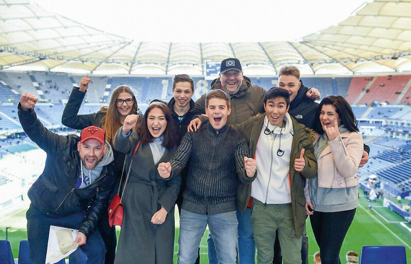 Hamburg. Gut gelaunt und quer durch Hamburg ging es am 4. Mai für die Wohngruppe Harburg mit Verstärkung aus der Mädchenwohngruppe in Hamburg und der Wohngruppe in Tostedt. Ihr gemeinsames Ziel: das HSV-Spiel gegen Ingolstadt im Volksparkstadion. Die Karten, inklusive eines Fotoshootings, hatte der Hamburger Sportverein gespendet. Kurz vor 11 Uhr kam die Gruppe in der Südtribüne an und ließ sich zunächst vom Fotografen ablichten. Vor Beginn des Spiels hatten die Jugendlichen noch die Gelegenheit, das Stadion zu inspizieren. Um 13 Uhr beobachteten alle dann sehnsüchtig den Anpfiff und feuerten begeistert den HSV an.