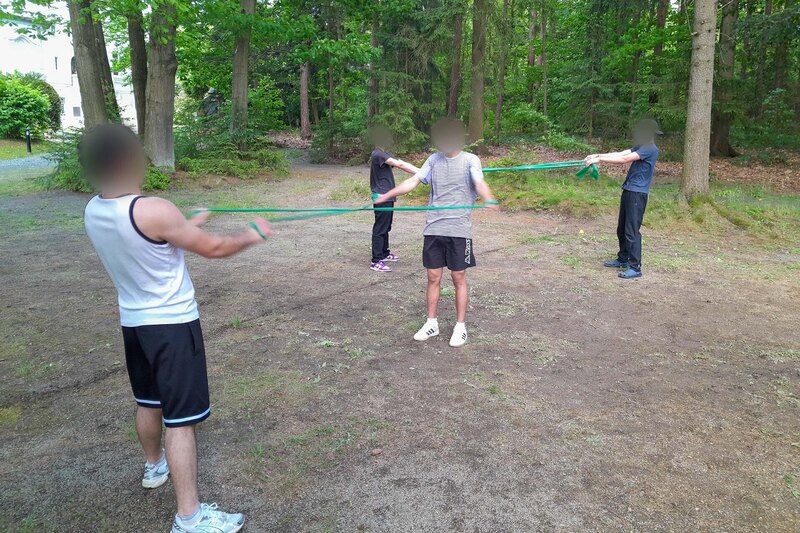 Der zweite Tag begann mit einem Kochkurs mit Jörg, dem hauseigenen Koch, der nicht nur für kulinarische Erfolge, sondern auch für viele neue Einblicke beim Schneiden, Braten und Abschmecken sorgte. Am Nachmittag übernahm Eugen, ein weiterer Mitarbeiter des Hauses und gelernter Fitnesstrainer, das sportliche Programm – mit viel Elan, Energie und einer Portion Muskelkater.