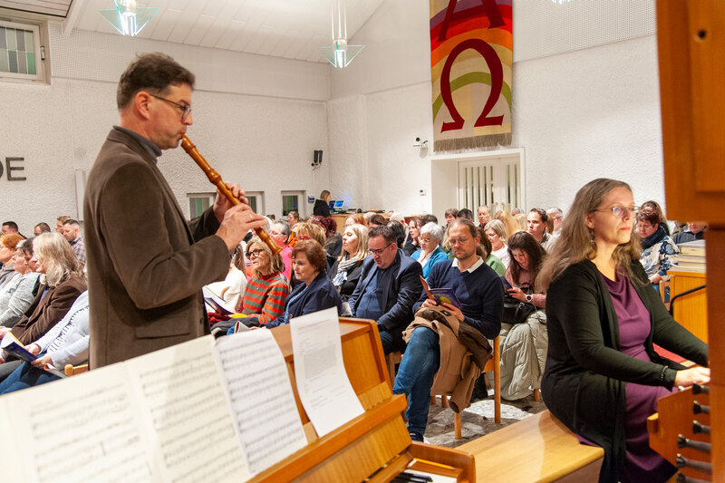 Außerdem gab es noch einen Abschied: Marita Schäfer, Leitung der Verwaltungsstelle für die Region West, wechselte mit Ablauf des Jahres in den Ruhestand. Den stellvertretenden Dank aller Kolleginnen und Kollegen überbrachte stellv. Regionalleiter Oliver Klein: „Du hast Großartiges geleistet, warst unglaublich engagiert und hast vielfältige Themen stets mit großer Verantwortung bearbeitet, die immer auch ein persönliches Anliegen waren!“ Darüber hinaus zeichne Marita Schäfer auch noch etwas anderes aus, sie sei einfach ein sehr liebenswerter Mensch. „Wir werden dich vermissen“, so Oliver Klein abschließend. Zwischen den Programmpunkten und zur Liedbegleitung gestalteten Simone Schuster (Orgel und Klavier) und Axel Grigo (Flöte) die Weihachtsfeier musikalisch.
