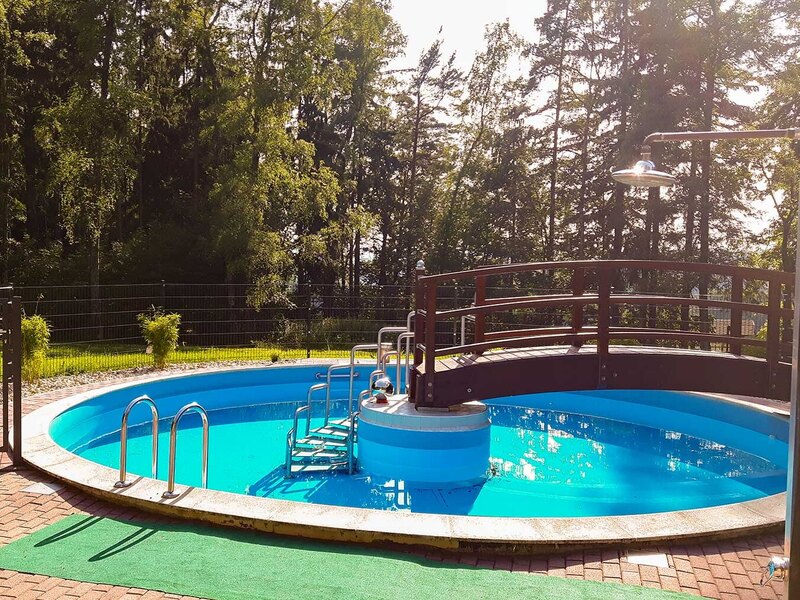 - Solarbeheizter Swimmingpool mit Gegenstromanlage