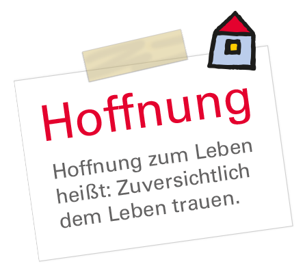 Der „Friedens-Hort“, das Haus in der Mitte, verdeutlicht als tatsächliches Haus Schutz und Geborgenheit, im übertragenen Sinn aber auch Zuwendung, Hilfe und Hoffnung. Keineswegs jedoch Isolation, wie das hell strahlende Fenster zeigt.