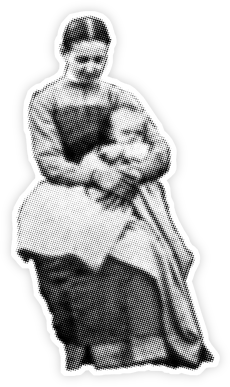 Mutter Eva mit Kindern der Traubenfamilie vor ihrem Häuschen im Jahr 1928.