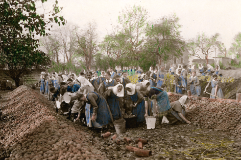 Diakonissen und Haustöchter bei der Kartoffelernte. Der Friedenshort war auf Selbstversorgung eingerichtet.