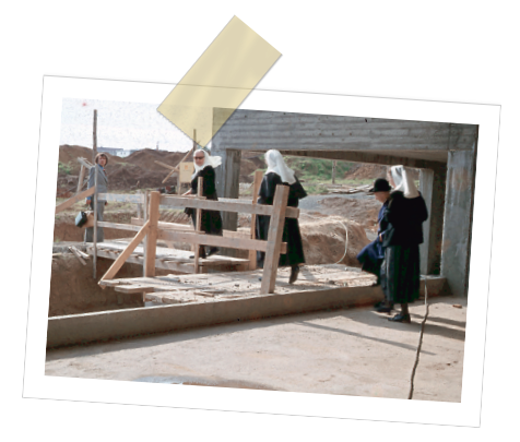 Begehung der Baustelle in Öhringen, mit Pastor Carlo Büchner (links im Bild), der 1967 die theologische Leitung des Friedenshortes in Westdeutschland übernommen hatte.