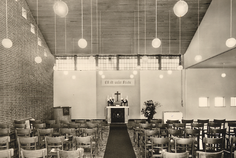 Die Friedenshort-Kirche ist seit 1963 geistliches Zentrum, der Altarraum wurde im Laufe der Jahre umgestaltet.