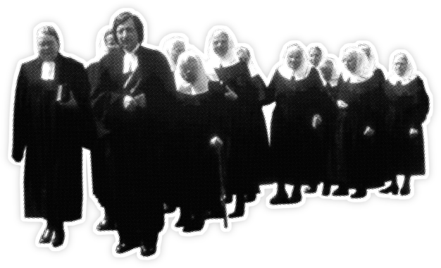 Einzug der Diakonissen in die Friedenshort-Kirche mit Pastor Carlo Büchner und Äbtissin von Werthern (Kloster Stift zum Heiligengrabe) beim Schwesternjubiläum 1990.
